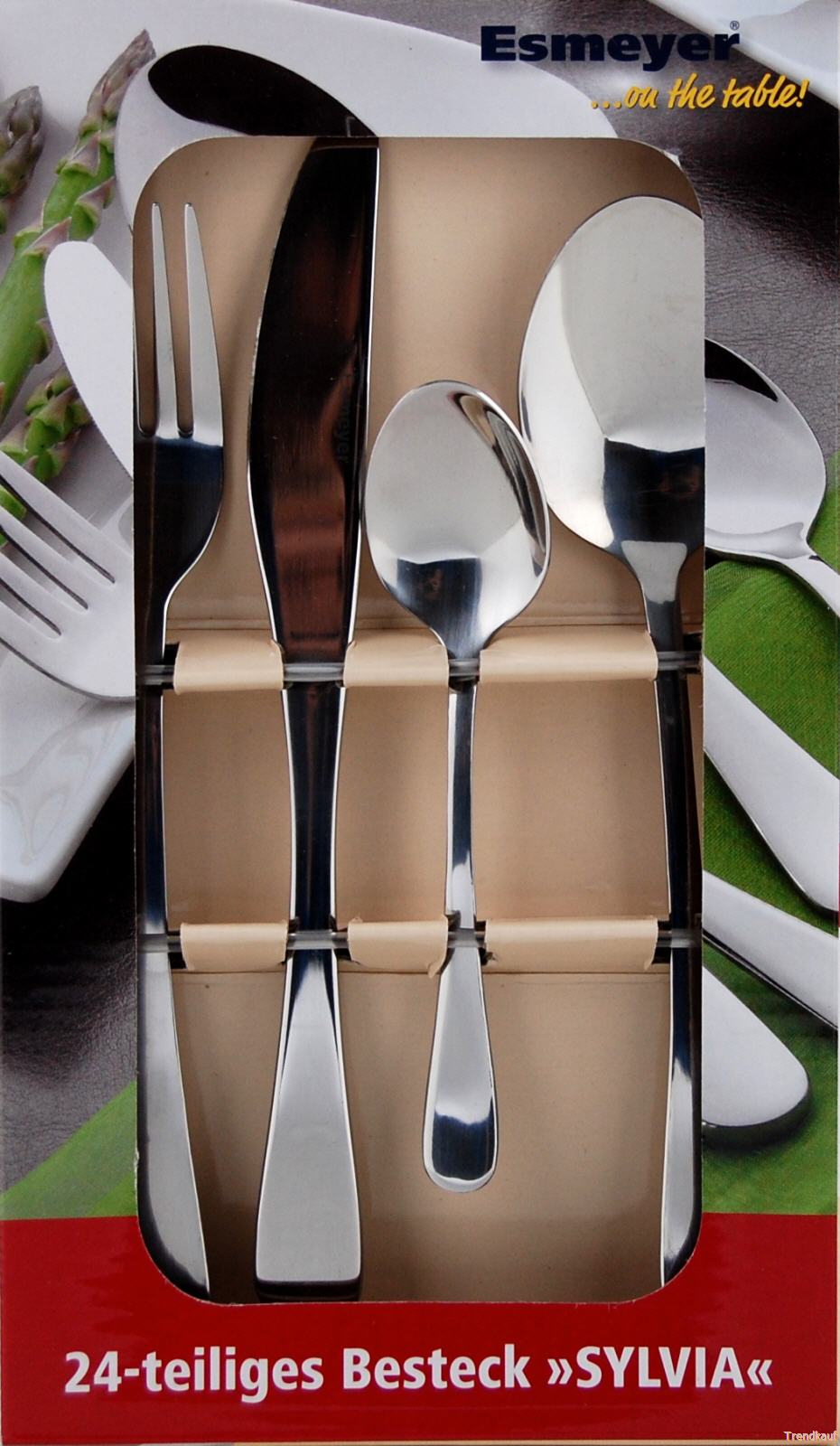 Besteckset Sylvia von Esmeyer 24-tlg. für 6 Personen Edelstahl 18/0, hochglanzpoliert spülmaschinengeeignet Messer-Klingen mit Wellenschliff im Geschenkkarton mit Fenster, Materialstärke: 2,0/1,8